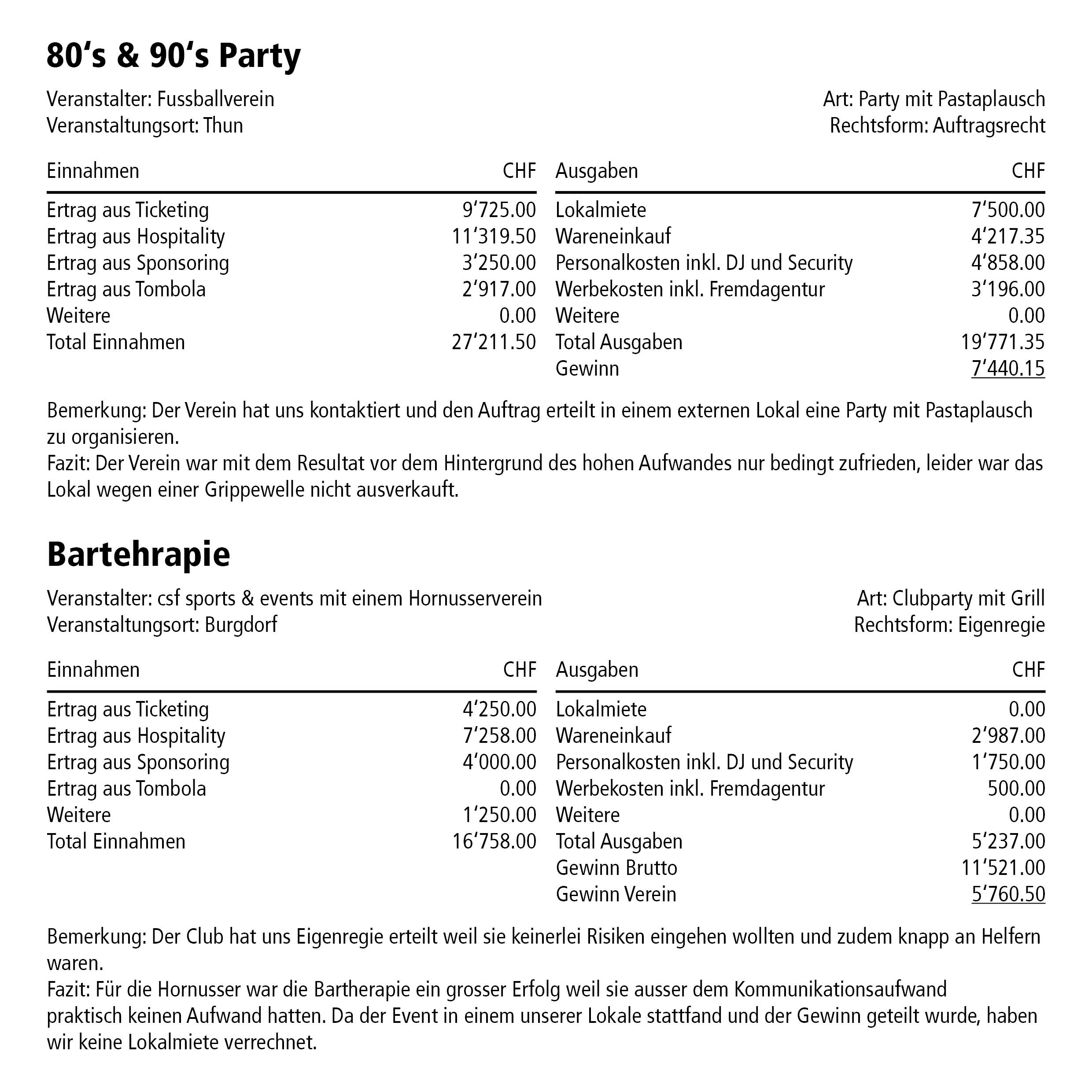 Während wir unsere firmeneigenen Lokale den Vereinen je nach Event kostenlos zur Verfügung stellen, führen wir Clubevents auch in externen Lokalen durch. Hierbei muss einfach beachtet werden, dass die Kosten der Lokalmiete den Reingewinn schmälern.